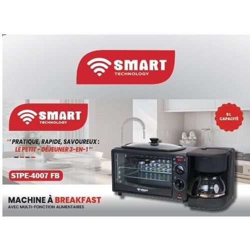 Machine A Petit-Déjeuner Avec Multi-fonction Alimentaires 3 En 1 (STPE-4007FB) FOUR – CAFETIERE -POELE(Plaque Chauffante) -9L-1050W -Noir/ 3 Mois De Garantie.