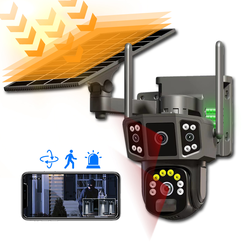 📹 Caméra de Sécurité Solaire IP 4G PTZ 8MP – Double Objectif | Surveillance Extérieure Intelligente